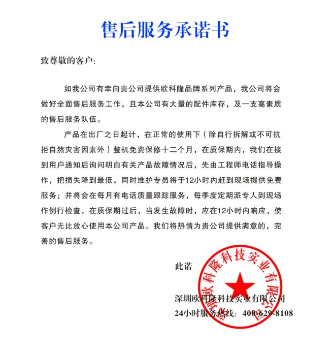 質(zhì)保期外售后服務(wù)成本價(jià)提供設(shè)備零部件;成本價(jià)提供維修保養(yǎng)服務(wù)。