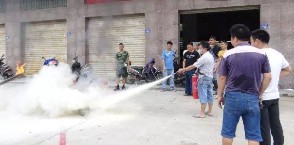 通過李組長的細(xì)致解說,在場大致了解。再請(qǐng)辦公室員工和產(chǎn)線員工各2名實(shí)操,通過王組長的輔導(dǎo),4名員工正確使用滅火器。