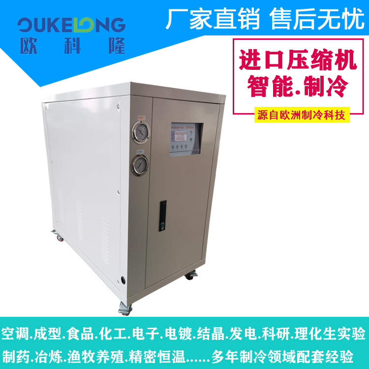 適用場景廣泛,可用于理化生實驗室、高校、電子、電鍍、食品等行業(yè)。歐科隆還提供整機免費保修一年、終身售后服務(wù),配送方式有工廠送貨上門和物流送貨上門,交期方面,有庫存配件1 - 3日即可交貨。歐科隆3匹水冷箱式冷水機組以其卓越性能和優(yōu)質(zhì)服務(wù),為各行業(yè)的制冷需求提供可靠保障。