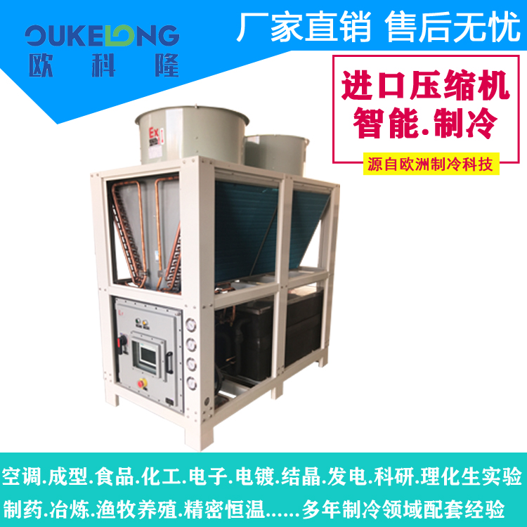 歐科隆20匹低溫防爆冷水機(jī)以安全、穩(wěn)定、高效為核心,適用于各類防爆環(huán)境,并提供定制化服務(wù),滿足不同工業(yè)需求。