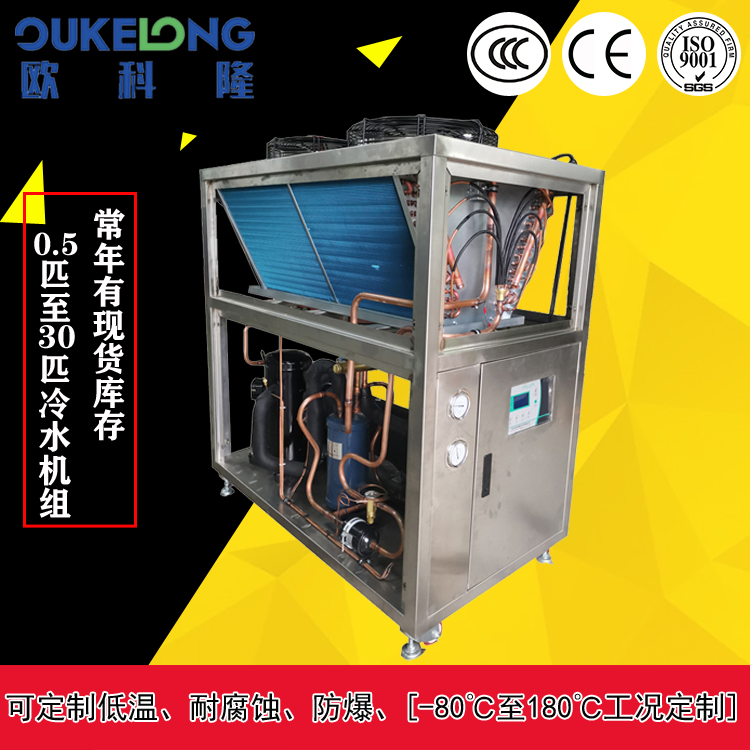 它具備一系列先進特點。采用知名品牌的高品質制冷壓縮機,效率比以往的壓縮機提升20 - 30%,性能強勁。數(shù)字微電腦溫度控制系統(tǒng)能精準把控冷卻液體溫度在 +3℃至 +50℃之間,保障機組穩(wěn)定運行,節(jié)能效果顯著。高效的系統(tǒng)保護裝置為機組正常運行保駕護航,設有壓縮機延時啟動、過載保護、高低壓保護、壓縮機過熱保護等,使用起來省心省力。熱交換器采用特殊技術升級鈦材料,不僅制冷效果良好,還具有很強的耐腐蝕性,使用壽命大幅延長。