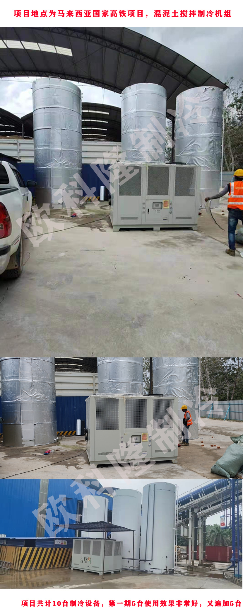 下面的案例是馬來西亞西海岸馬高鐵項目混泥土攪拌專用冷水機組項目。據(jù)了解該項目為中國交建集團承接,項目品質要求極高,