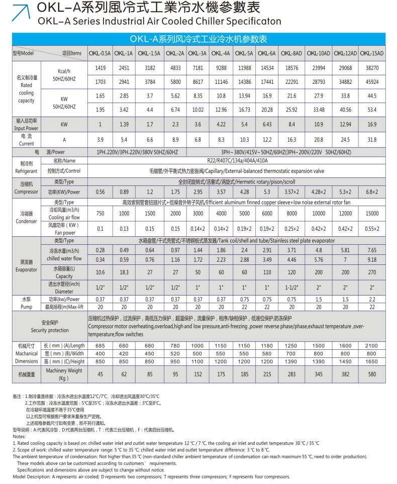 7、歐科隆牌冷水機(jī)制冷量范圍廣,型號(hào)齊全,可完全滿足工業(yè)冷水機(jī)的選型